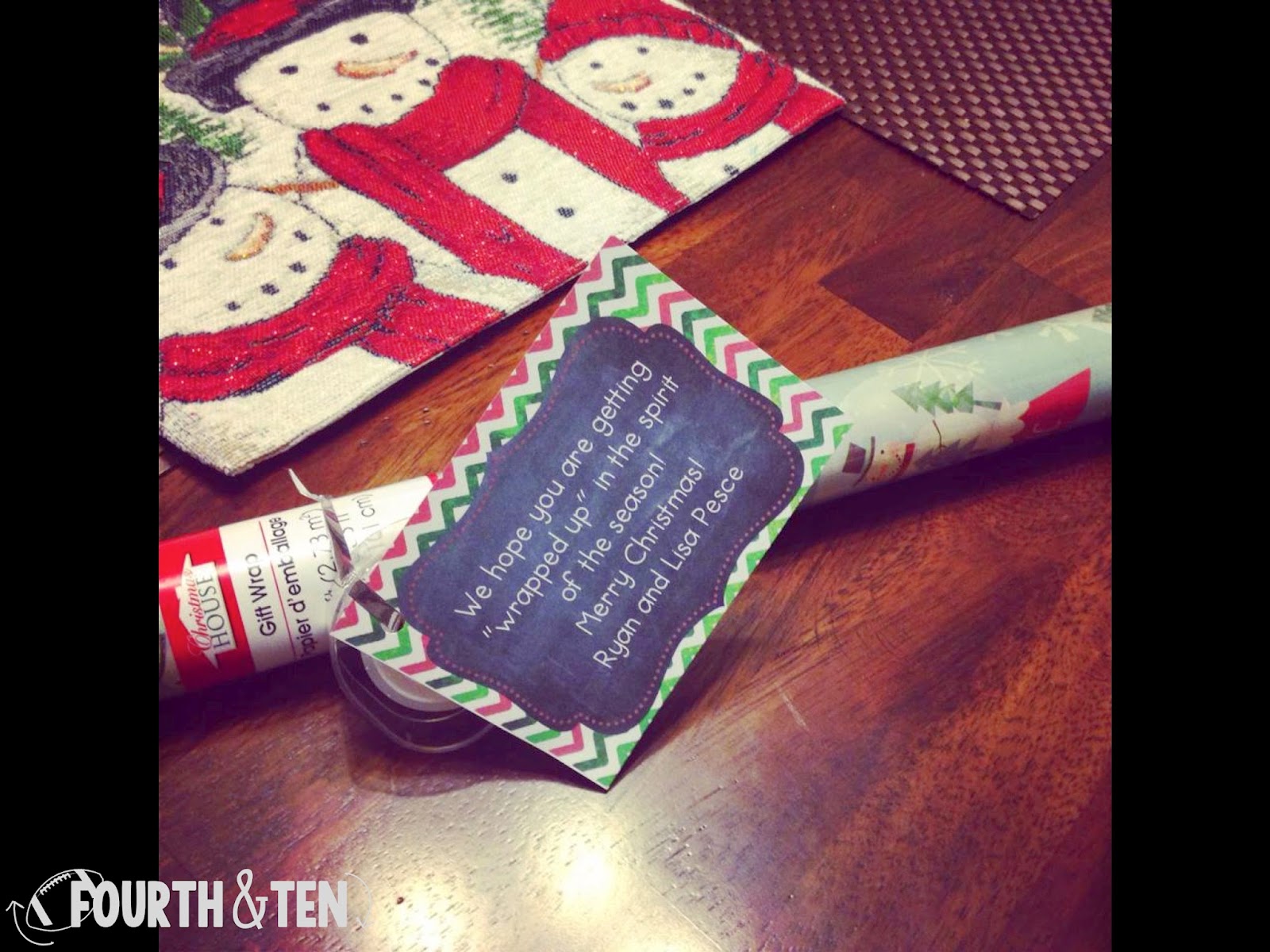 The gift wrap and tape were purchased at Dollar Tree. :) I PROMISE they didn't sponsor this post, I just love DT this time of the year!
